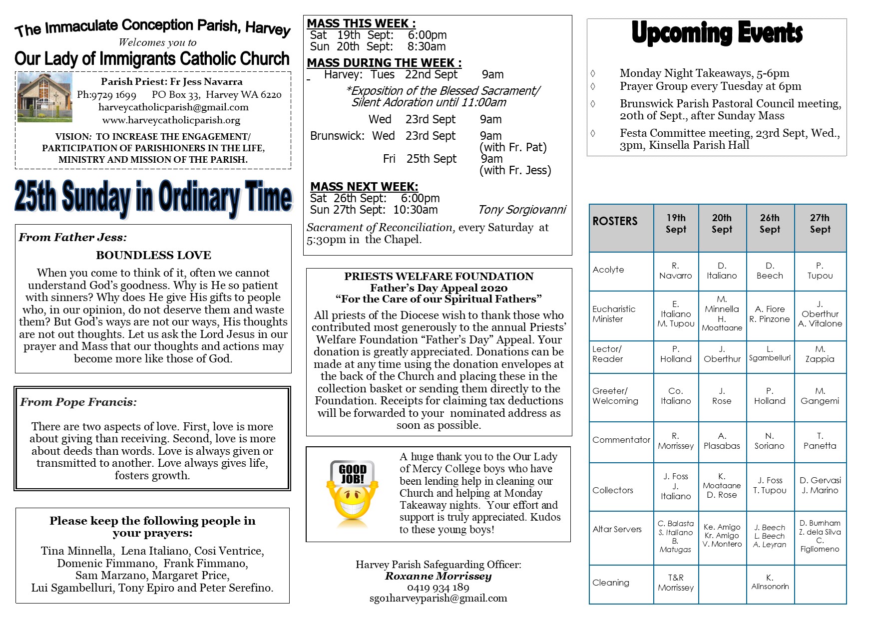25th Sunday September 18, 2020 harveycatholicparish 25th-sunday-1Download Share this: Click to share on X (Opens in new window) X Click to share on Facebook (Opens in new window) Facebook Like Loading... Related Published by harveycatholicparish View all posts by harveycatholicparish