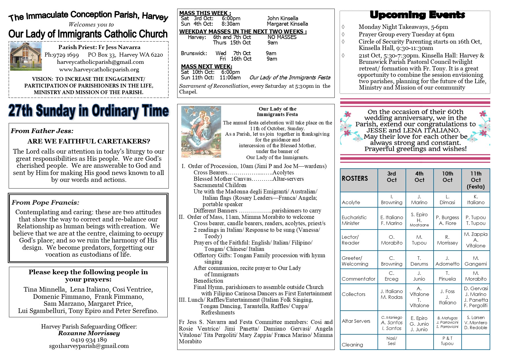 27th Sunday October 2, 2020 harveycatholicparish 27th-sundayDownload Share this: Click to share on X (Opens in new window) X Click to share on Facebook (Opens in new window) Facebook Like Loading... Related Published by harveycatholicparish View all posts by harveycatholicparish