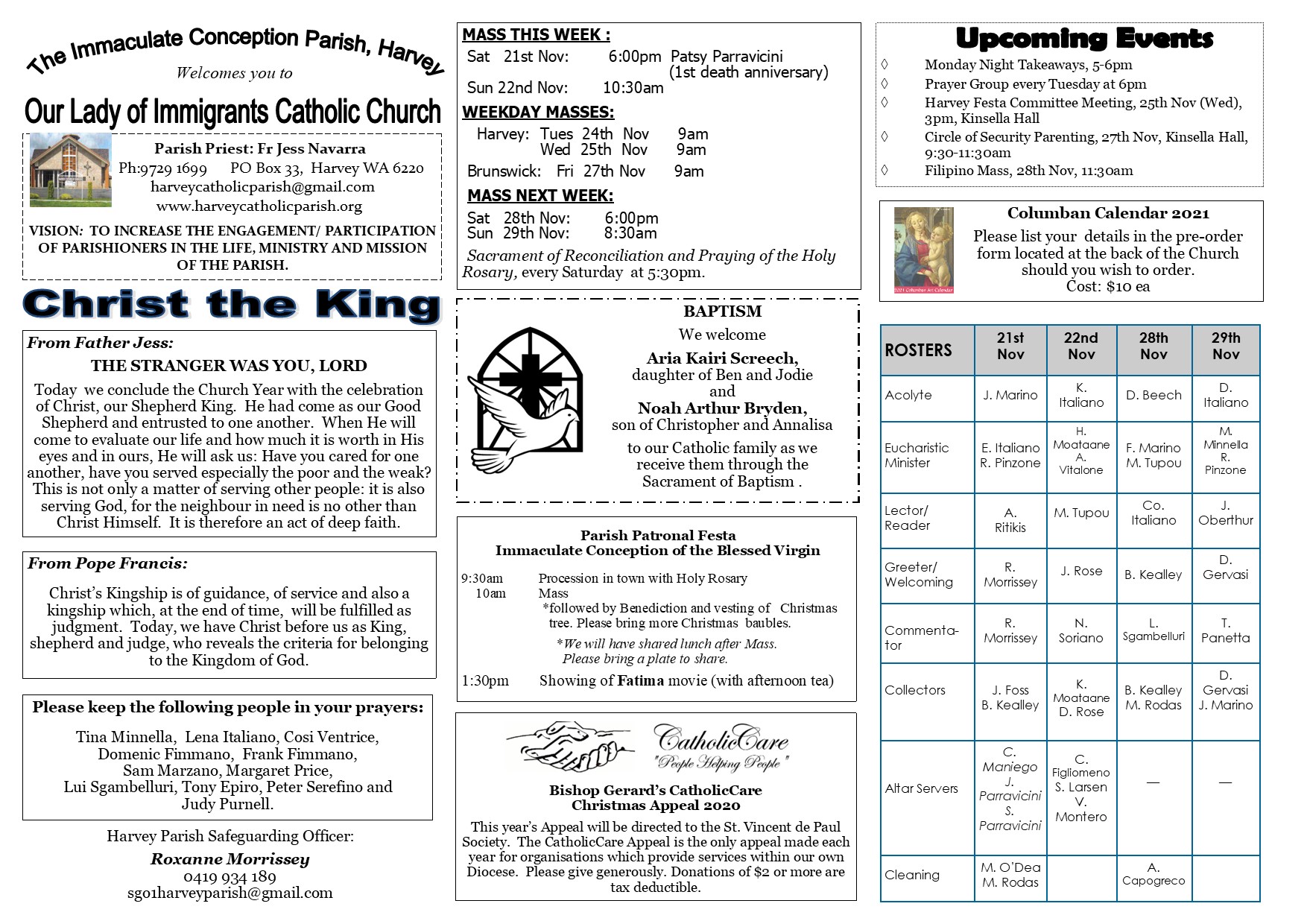 Christ the King November 20, 2020 harveycatholicparish christ-the-kingDownload Share this: Click to share on X (Opens in new window) X Click to share on Facebook (Opens in new window) Facebook Like Loading... Related Published by harveycatholicparish View all posts by harveycatholicparish