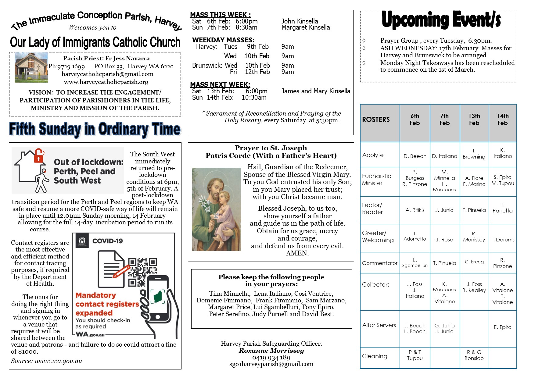 Fifth Sunday in Ordinary Time February 5, 2021 harveycatholicparish 5th-sundayDownload Share this: Click to share on X (Opens in new window) X Click to share on Facebook (Opens in new window) Facebook Like Loading... Related Published by harveycatholicparish View all posts by harveycatholicparish