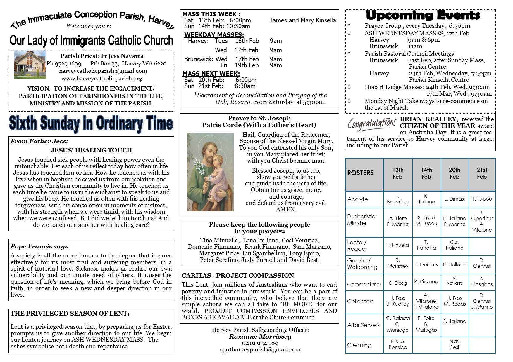 Sixth Sunday in Ordinary Time February 12, 2021 harveycatholicparish 6th-sundayDownload Share this: Click to share on X (Opens in new window) X Click to share on Facebook (Opens in new window) Facebook Like Loading... Related Published by harveycatholicparish View all posts by harveycatholicparish