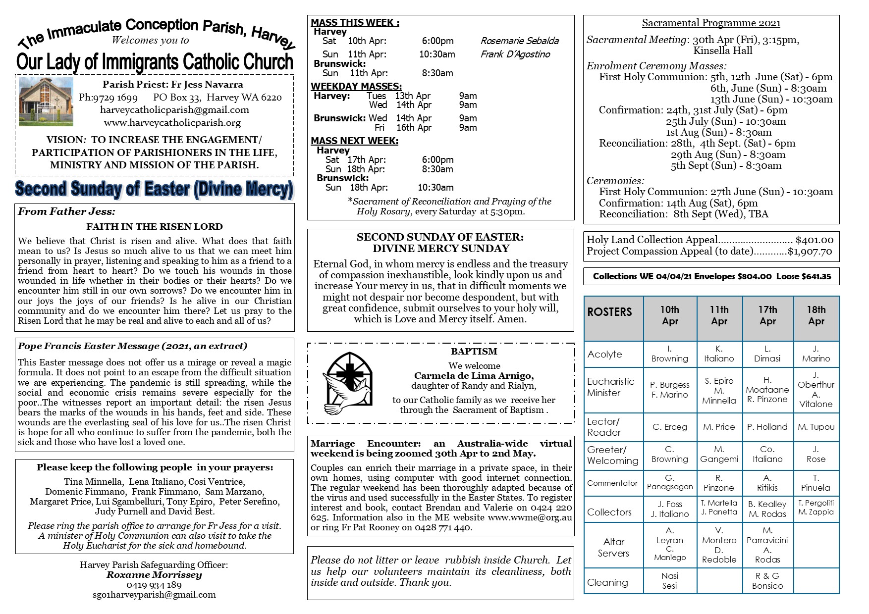 Second Sunday of Easter April 9, 2021 harveycatholicparish 2nd-sunday-of-easterDownload Share this: Click to share on X (Opens in new window) X Click to share on Facebook (Opens in new window) Facebook Like Loading... Related Published by harveycatholicparish View all posts by harveycatholicparish
