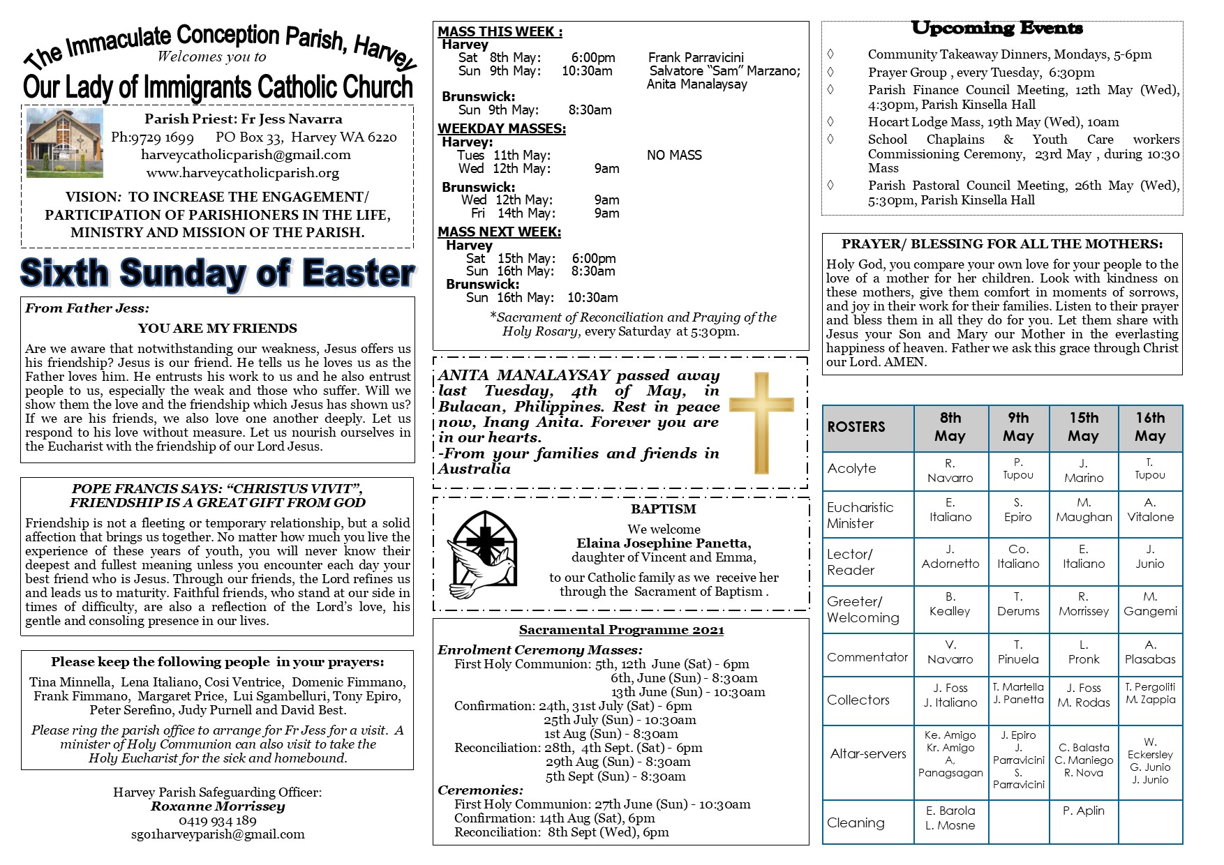 Sixth Sunday of Easter May 7, 2021 harveycatholicparish 6th-sunday-of-easterDownload Share this: Click to share on X (Opens in new window) X Click to share on Facebook (Opens in new window) Facebook Like Loading... Related Published by harveycatholicparish View all posts by harveycatholicparish