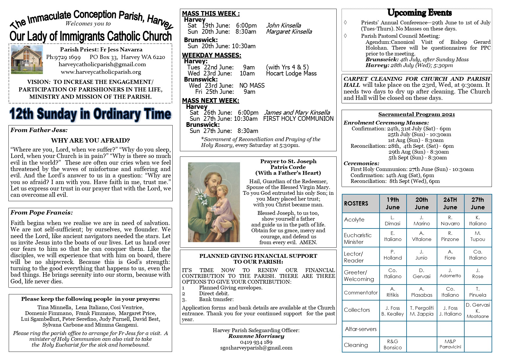 Twelfth Sunday in Ordinary Time June 18, 2021 harveycatholicparish 12th-sundayDownload Share this: Click to share on X (Opens in new window) X Click to share on Facebook (Opens in new window) Facebook Like Loading... Related Published by harveycatholicparish View all posts by harveycatholicparish