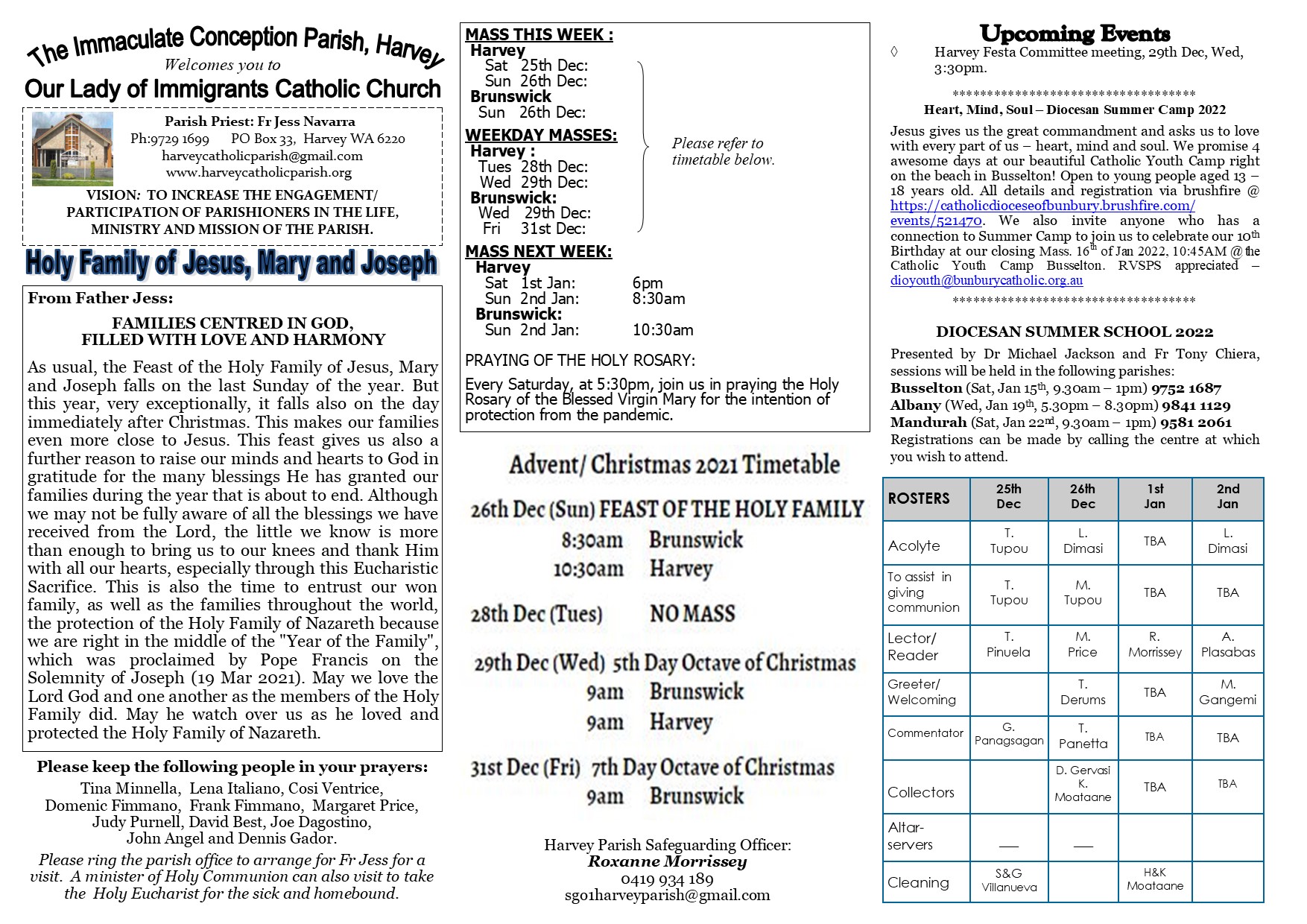 Feast of the Holy Family December 25, 2021 harveycatholicparish holy-familyDownload Share this: Click to share on X (Opens in new window) X Click to share on Facebook (Opens in new window) Facebook Like Loading... Related Published by harveycatholicparish View all posts by harveycatholicparish