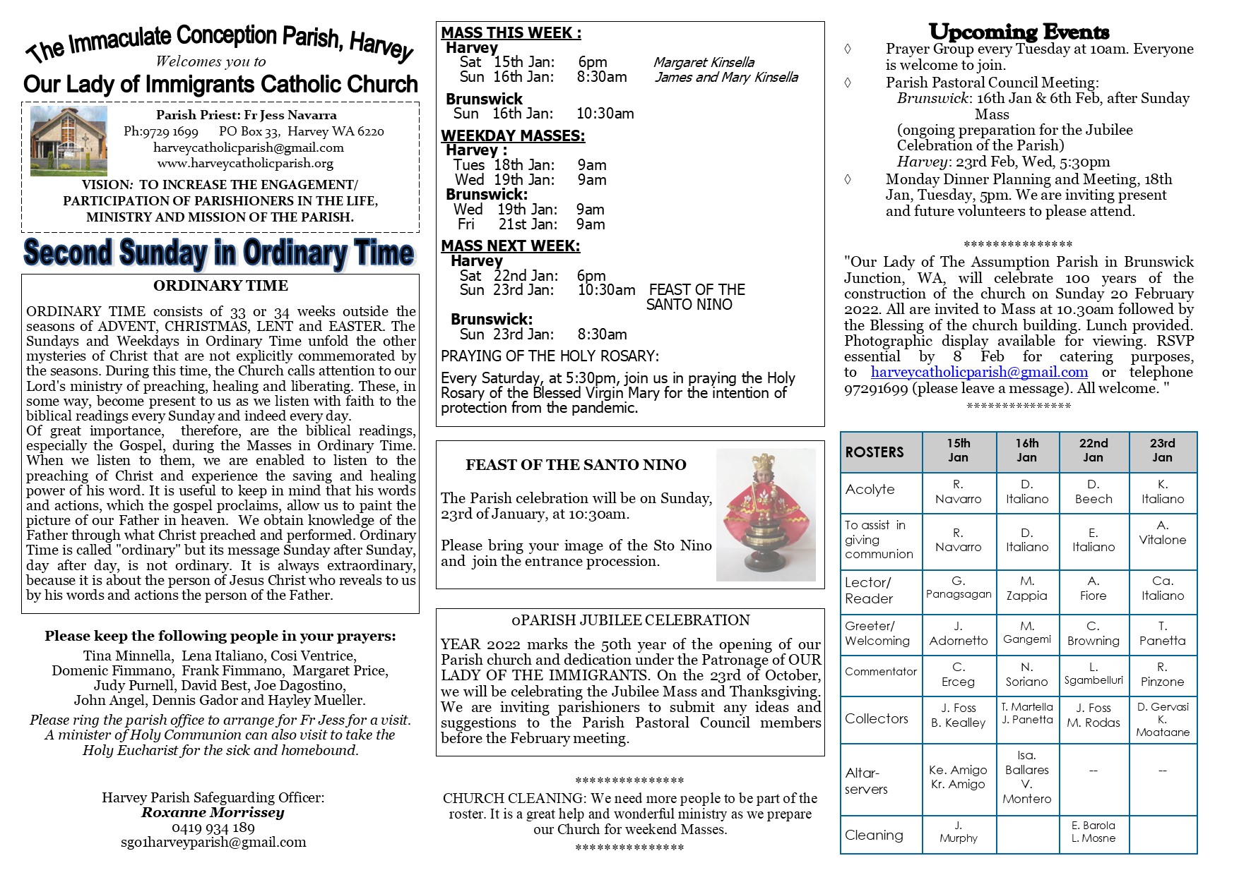 2nd Sunday in Ordinary Time January 14, 2022 harveycatholicparish 2nd-sundayDownload Share this: Click to share on X (Opens in new window) X Click to share on Facebook (Opens in new window) Facebook Like Loading... Related Published by harveycatholicparish View all posts by harveycatholicparish