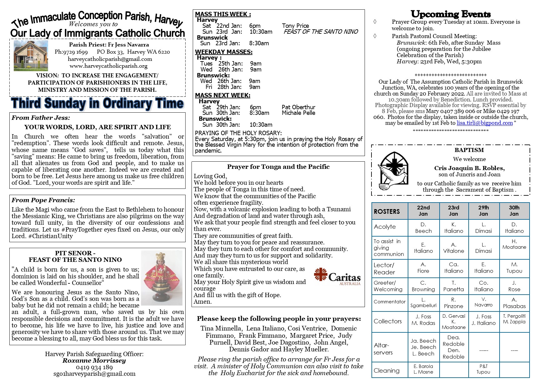 Third Sunday in Ordinary Time January 21, 2022 harveycatholicparish 3rd-sundayDownload Share this: Click to share on X (Opens in new window) X Click to share on Facebook (Opens in new window) Facebook Like Loading... Related Published by harveycatholicparish View all posts by harveycatholicparish