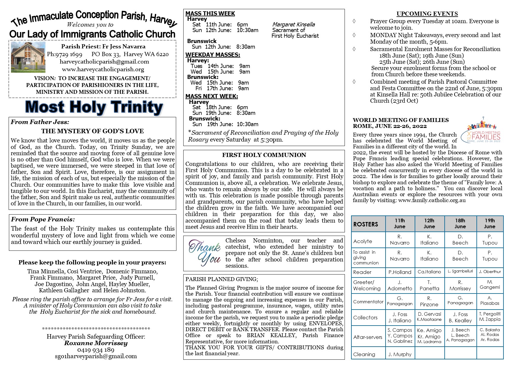 Most Holy Trinity June 10, 2022 harveycatholicparish most-holy-trinityDownload Share this: Click to share on X (Opens in new window) X Click to share on Facebook (Opens in new window) Facebook Like Loading... Related Published by harveycatholicparish View all posts by harveycatholicparish